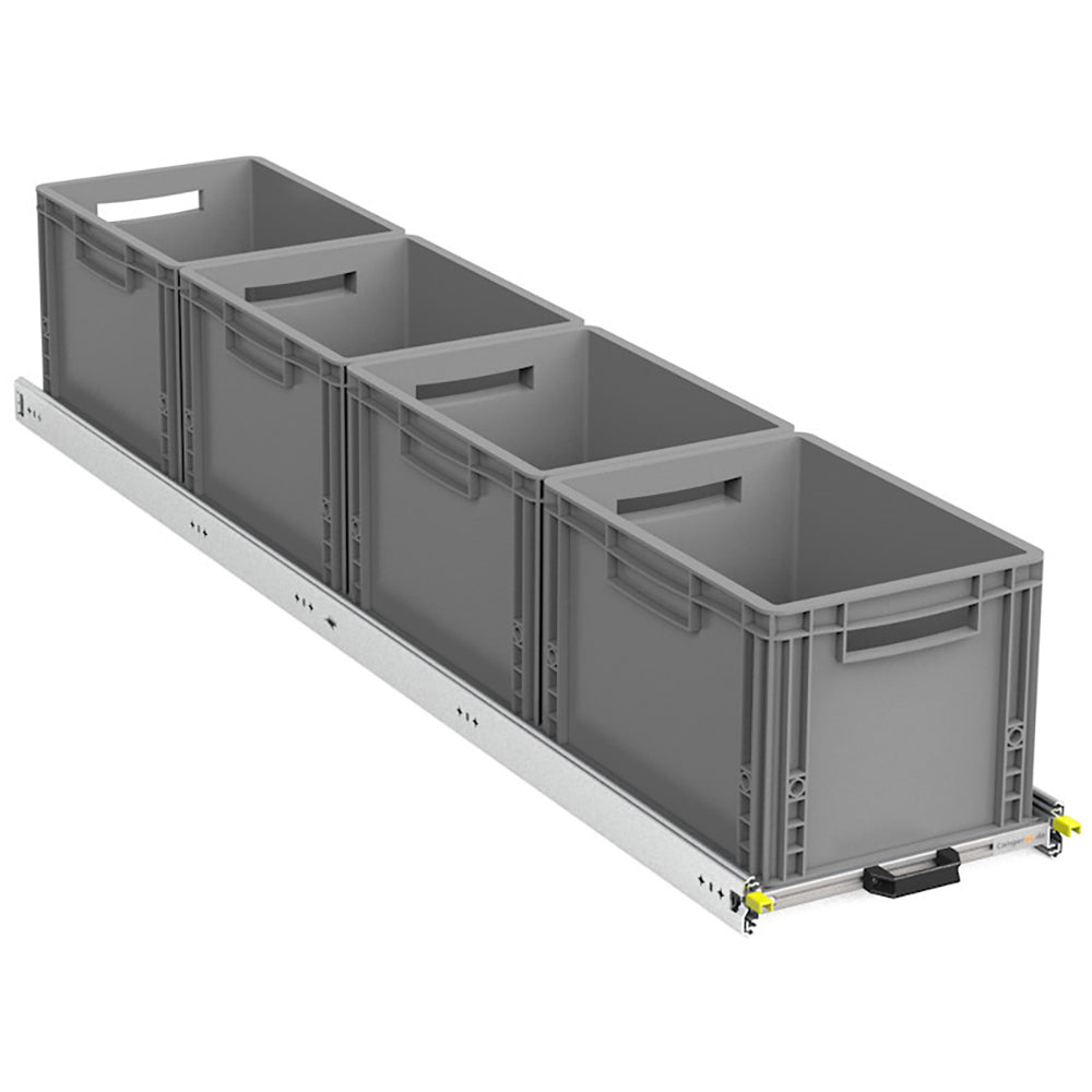 Für alle Handwerker bieten wir speziell auf die Euroboxnorm abgestimmte Auszugssets in 22 Varianten – von 400 mm bis 1800 mm Auszugslänge und in drei Traglaststufen zwischen 100 kg und 220 kg. Robust, passgenau und professionell verarbeitet – ideal für den täglichen Einsatz.